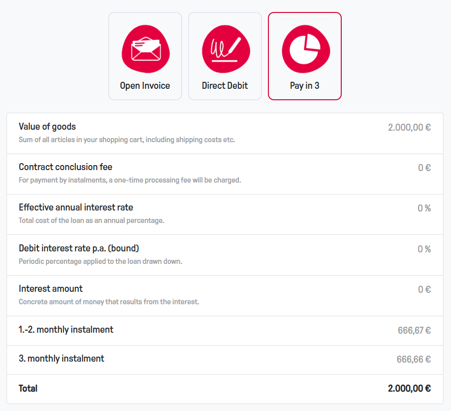 - an instalment plan will be sent by Ratepay,