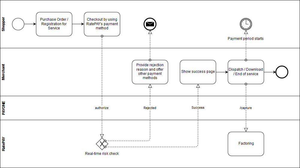 When a shopper selected Ratepay's payment method, we do several velocity and fraud checks. Based on their results we accept or decline the transaction. There is no status like PENDING. In case of SUCCESS, you can start fulfilling the purchase order immediately.