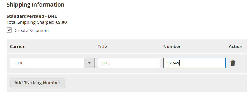 You are also able to submit the tracking information to Ratepay. For this check the Create Shipment checkbox and enter the carrier information for this delivery.
