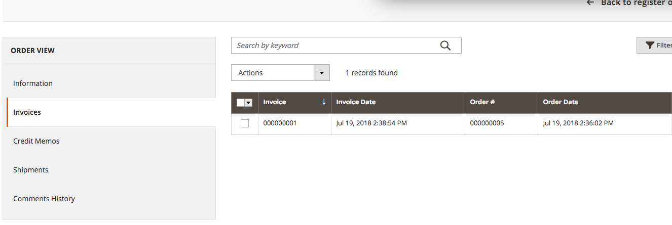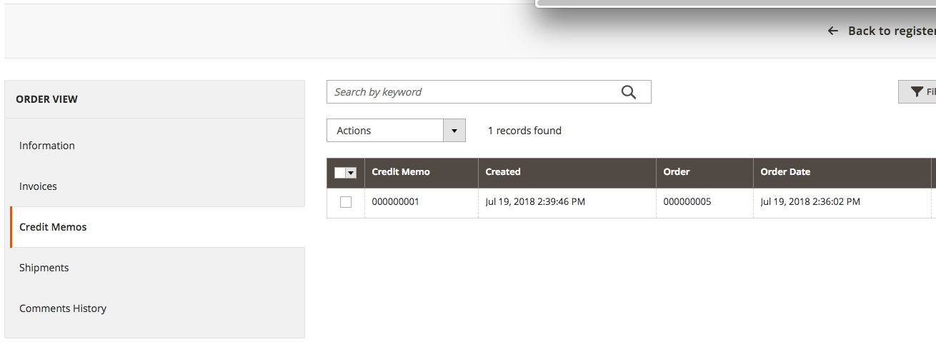 To return a full or partial order, click Credit memo in the order view.
