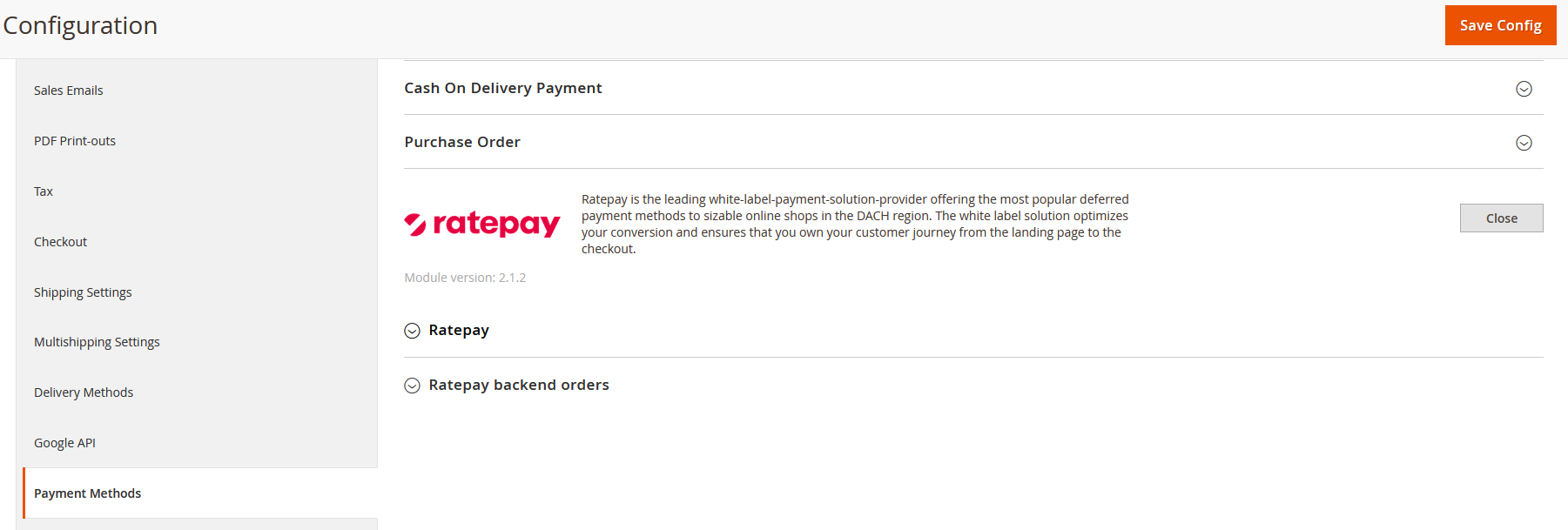| B2B | B2B | By default, this value is NO. If you still wish to activate Ratepay payment methods for business customers, please ask your contact person. |