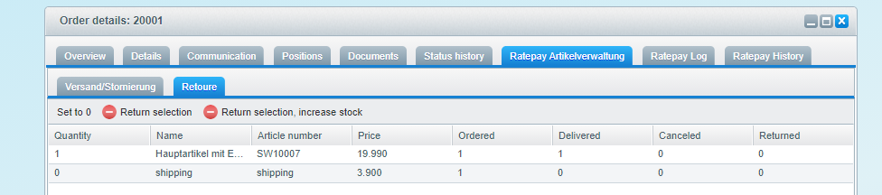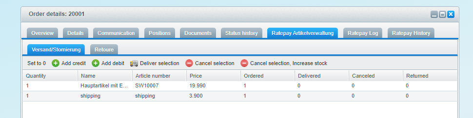You can process purchases via the tab "Item management" in the order details. This is where you can find the "Shipping/Cancellation" and "Returns" tabs.