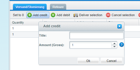 - Use the button Send selection Until that point you can cancel the credit by using the button Cancel selection.