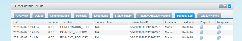 Find all information about each respective status update made by using the Ratepay Payment Plugin.