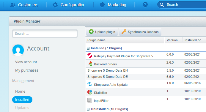 Install custom plugins and modified releases by clicking Installed and use the Upload plugin button to add your own