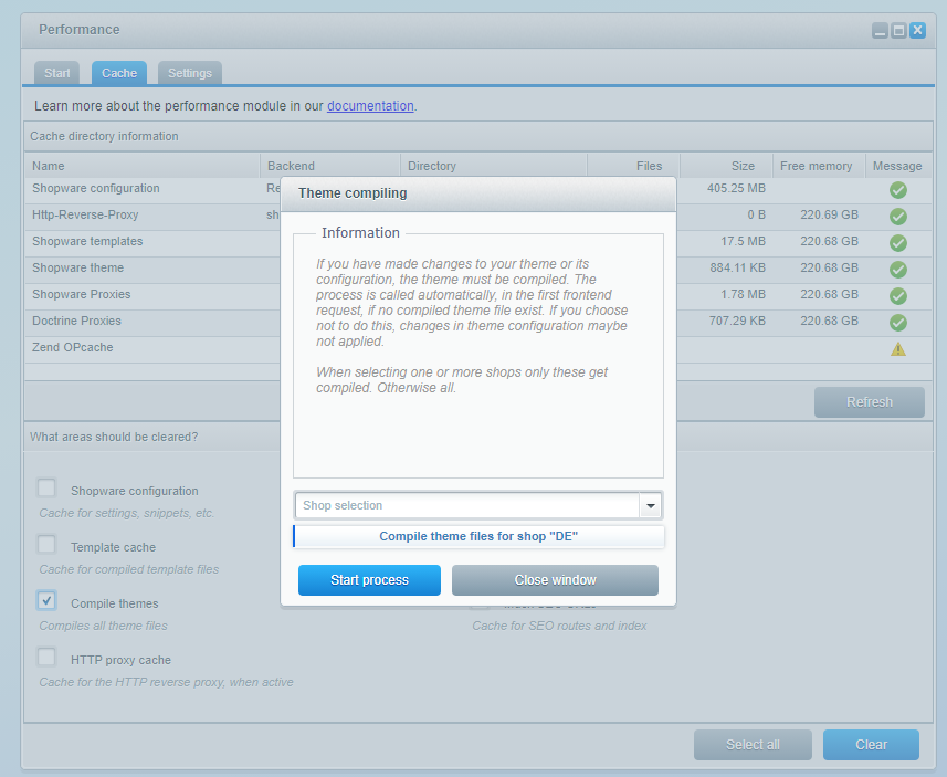 Choose your shop in the drop down menu "Shop selection" and click on Start process.