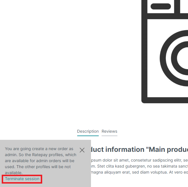 Now you are redirected to your web shop. Here you are able to place to order in the name of your customer. The orders will be redirected to the configured Ratepay admin order profile.