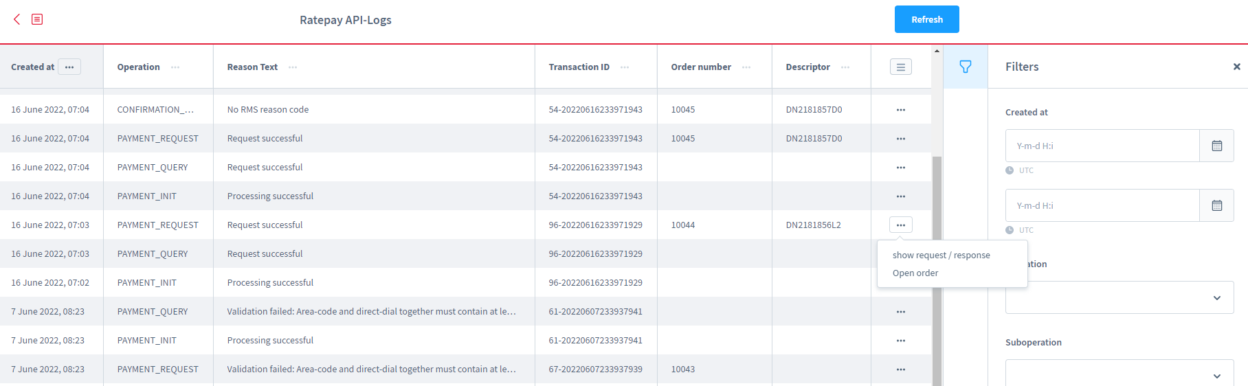 PROFILE_REQUEST | Configuration | Operation to read the actual Ratepay profile configuration. |