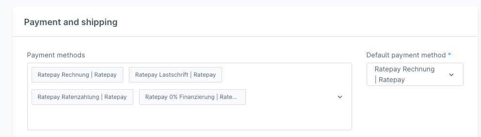 Per default the Ratepay payment methods are described as