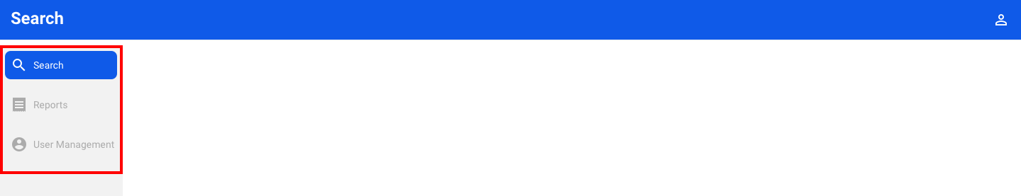 On the left side you will find the most important menu items. The side navigation menu contains the search, reports and user management functions.
