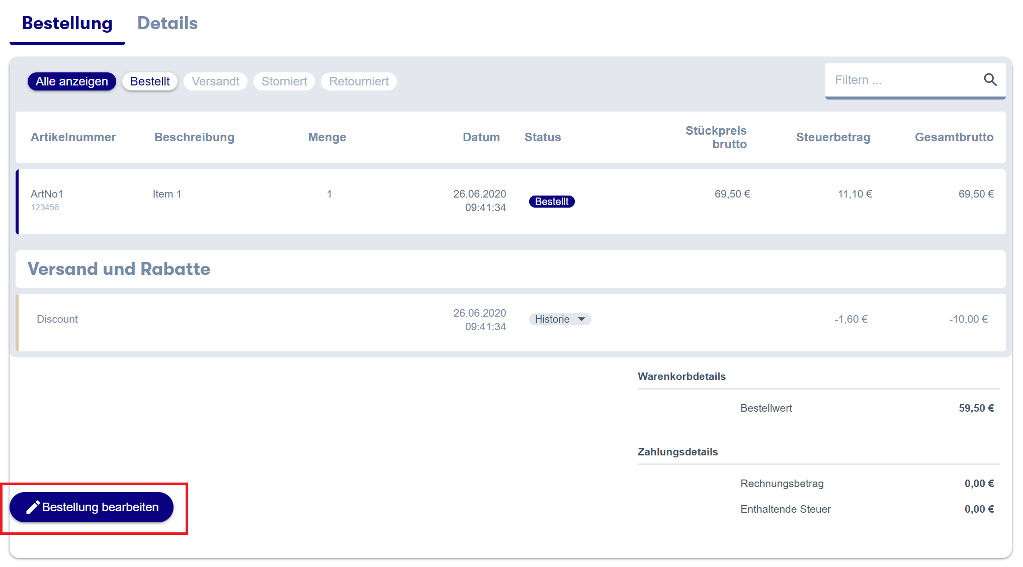 Therefore, click on "edit order"