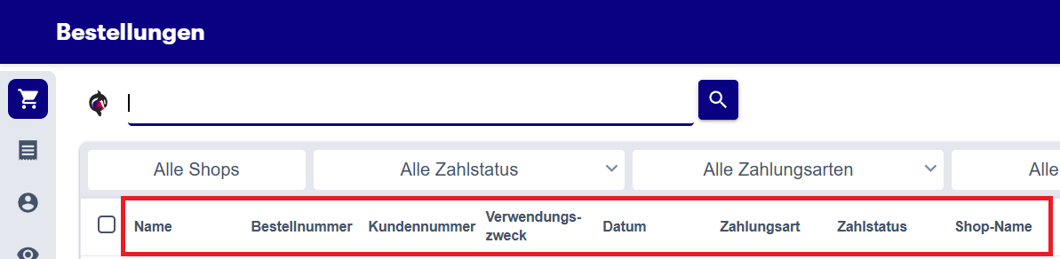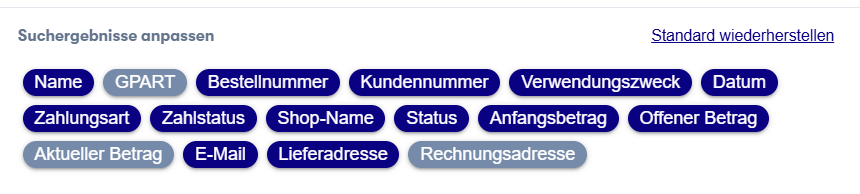Nun sehen Sie die angepassten Ergebnisspalten, wenn Sie nach Transaktionen suchen. Sie können Ihre Einstellungen jederzeit ändern oder auf die Standardeinstellungen zurücksetzen.