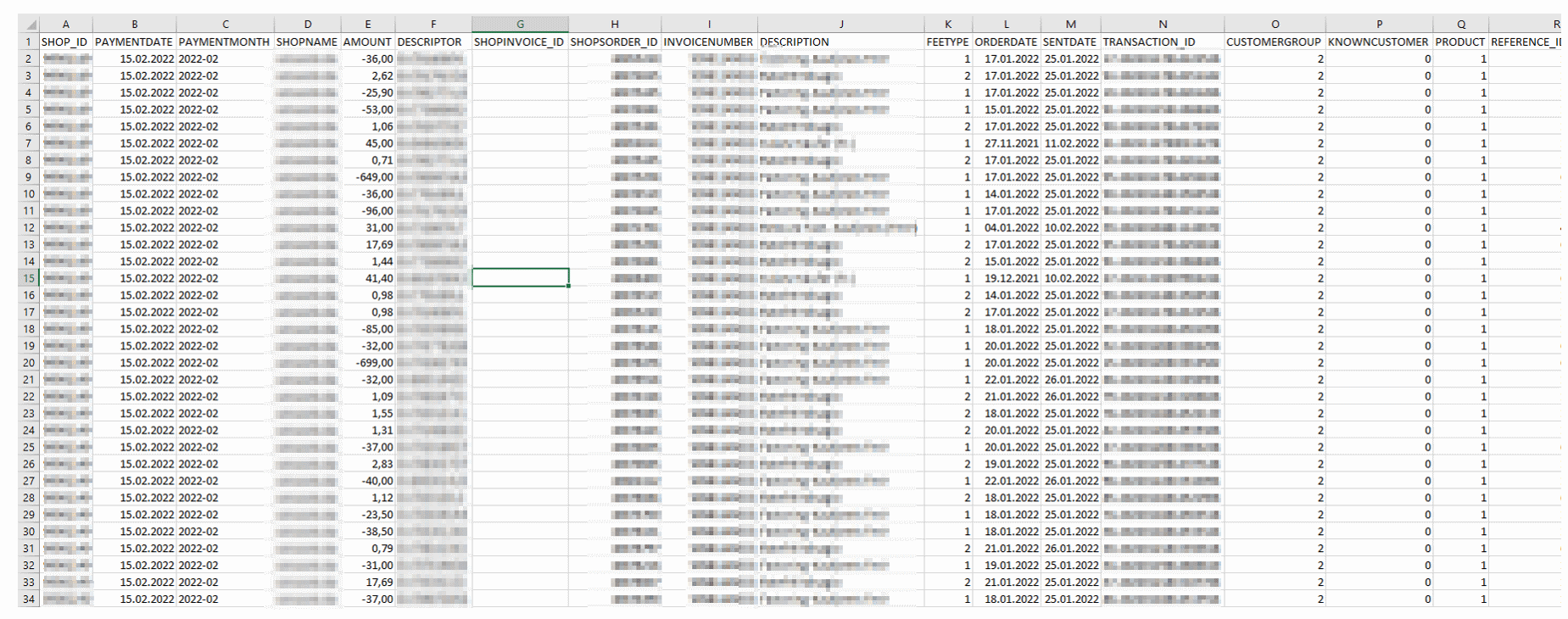 Problem: When the CSV settlement report is imported into Excel it does not show information on transaction level