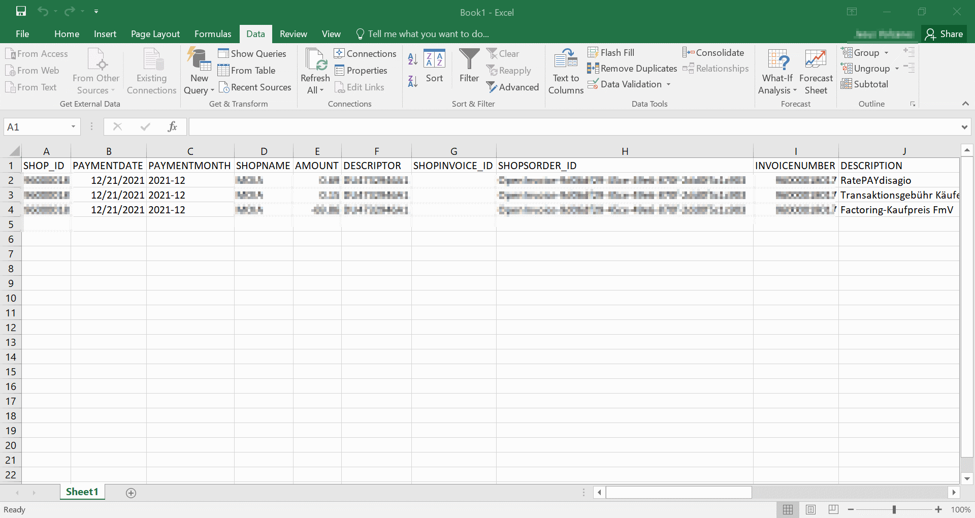 - The file is correctly imported into Excel. Do not forget to save it