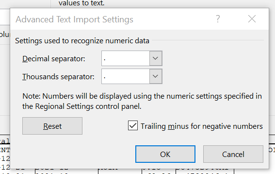 - (Optional: if your locale does not use dot "." as decimal separator) Click "Advanced..."