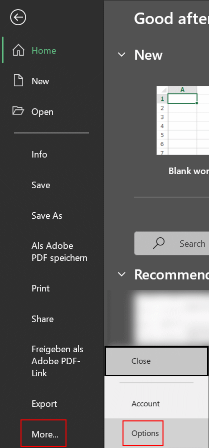 - Select in the left sidebar "More...", and then "Options"